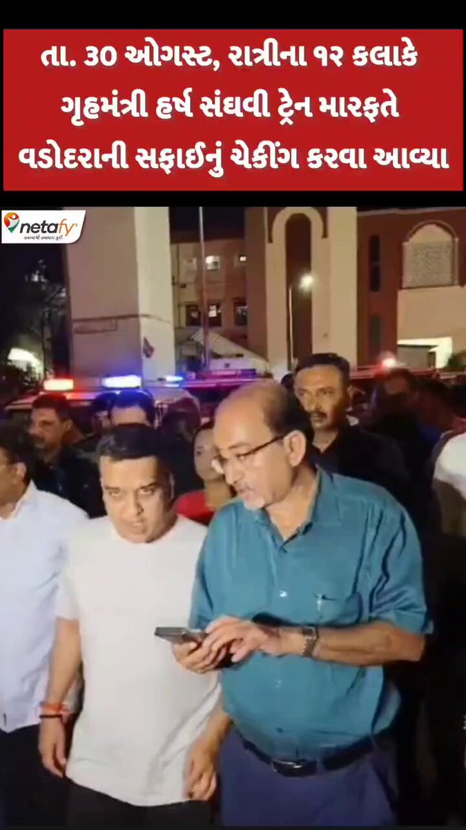 ગૃહમંત્રી ૩૦ ઓગસ્ટ રાત્રે ૧૨ કલાકે વડોદરાની સફાઈનું નિરીક્ષણ કરવા પહોંચ્યા #netafy #vadodara #netafynews #harshsanghvi