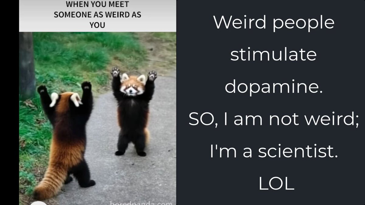 Weird people stimulate dopamine. SO, I am not weird; I'm a scientist. LOL Happy Monday - #Weird #Networking #networkinghumor