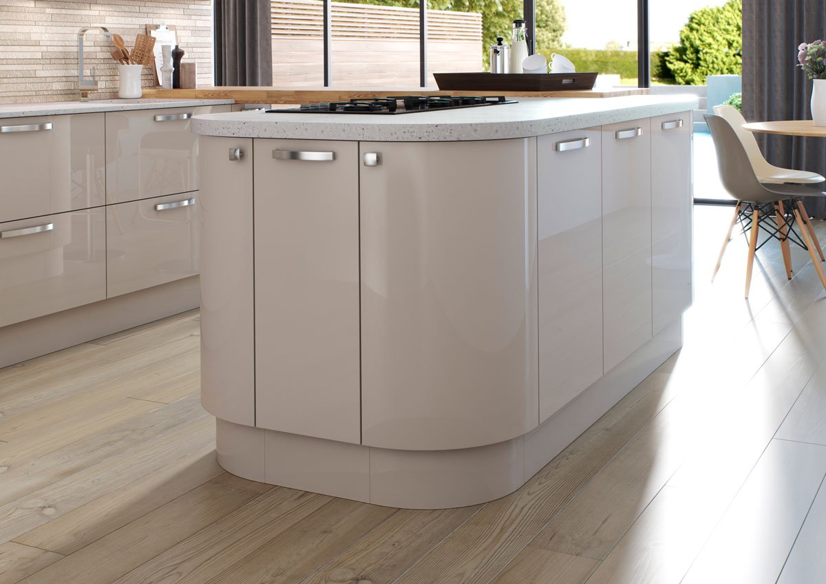 HAMELDOWN | Featuring our curved doors for the perfect island. Doors in Dune #curveddoors #kitchens #neutralkitchen
