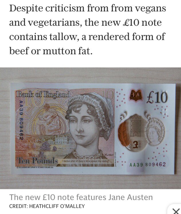 Has there been a #vegan backlash against the Jane Austen #NewTenPoundNote yet? If not, what's taking them so long? >>