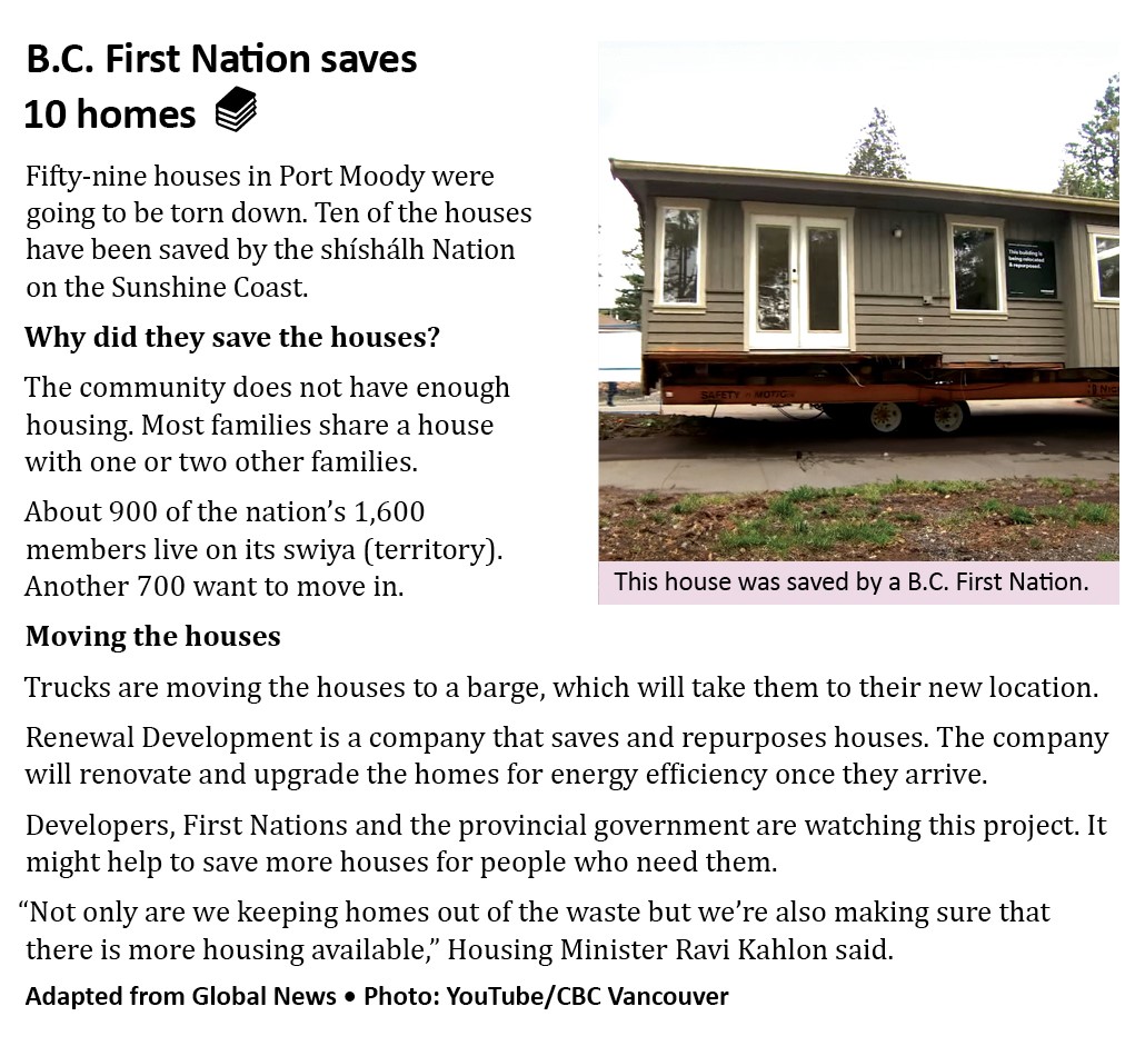 🏠 Good news for the #shishalhNation on the #SunshineCoast! This book level 3 article is adapted from @globalnews in The WCR #Newspaper4Learners June issue. #HousingCrisis #BC #News #Newspaper #AdultLiteracy #Literacy #TeacherResource 👉 Subscribe at: thewestcoastreader.com