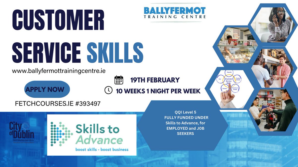 FULLY FUNDED TRAINING , open to Employed and Job seekers, find out more Call 01 6055900 or APPLY NOW on FETCHCOURSES.IE REF 423896 or CALL US 016055900 #ThisisFET #CityofDublinETB #nighttraining
