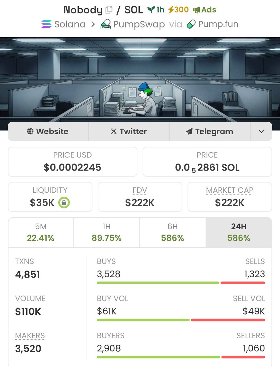 2.4x up from my call on $Nobody 💸 Send a DM to join my PRIVATE GROUP 📊🚀 Let’s gooo #Nobody #Solana #Memecoin #Nfts #Crypto #Bitcoin #Pumpswap #Binance