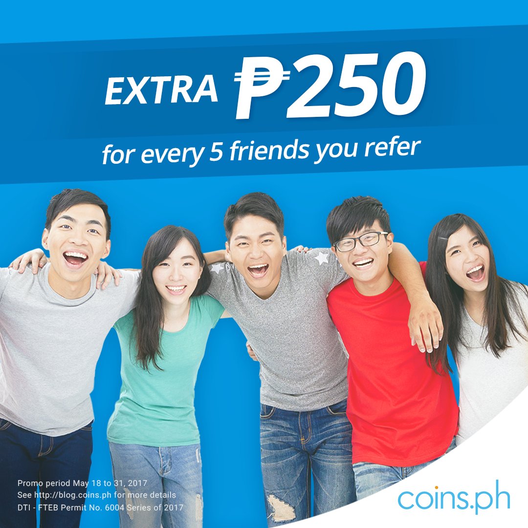 Get an extra Php 250 when you refer 5 friends on Coins.ph! Learn more: bit.ly/2qAhGVQ #NonStopRewards