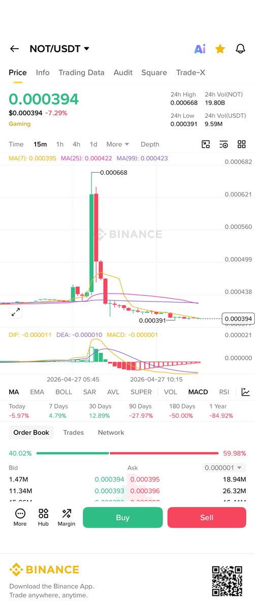 Day2 afternoon session. I was very busy but in my mind am saying let me finish go do my challenge. $NOT using formed a descending triangle. Also gives a double bottom pattern. Let's wait for breaksout at upper trendline. #NOTCOIN #30dayschallenge