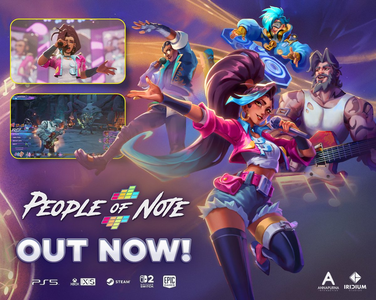 People of Note - @IridiumStudios Hoy disponible en PC | PS5 | XBXS | NS2 Juego de rol musical por turnos, deberás ayudar a Cadence a reunir a un grupo de músicos y alcanzar el estrellato. Aquí los combates por turnos son muy distintos: cada batalla es una actuación musical.