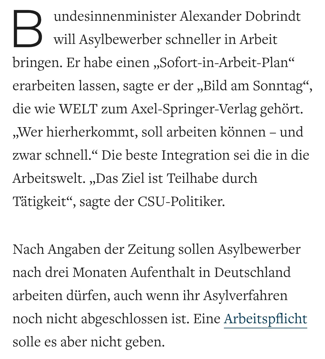 Ohne eine Arbeitspflicht wird sich wohl kaum einer dazu bereit erklären, freiwillig zu arbeiten ! #Nullnummer #Dobrindt
