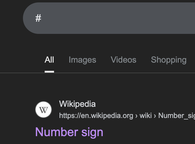 if u search up # the first thing that comes up is Number sign This isn't a hashtag this is a #NumberSign