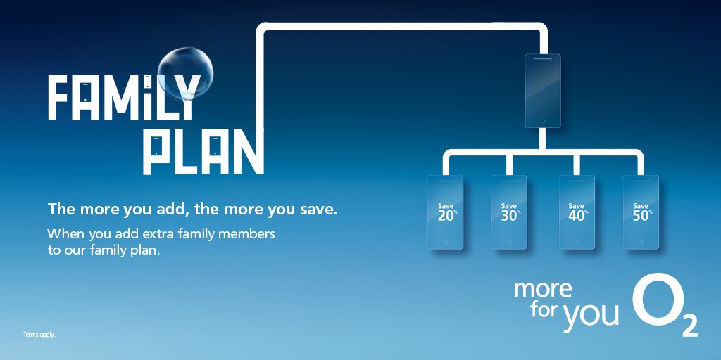 "With up to 20 connections available to be added to one simple bill system even the largest of UK families can save." goo.gl/3RZ3mD #O2FamilyPlan #O2