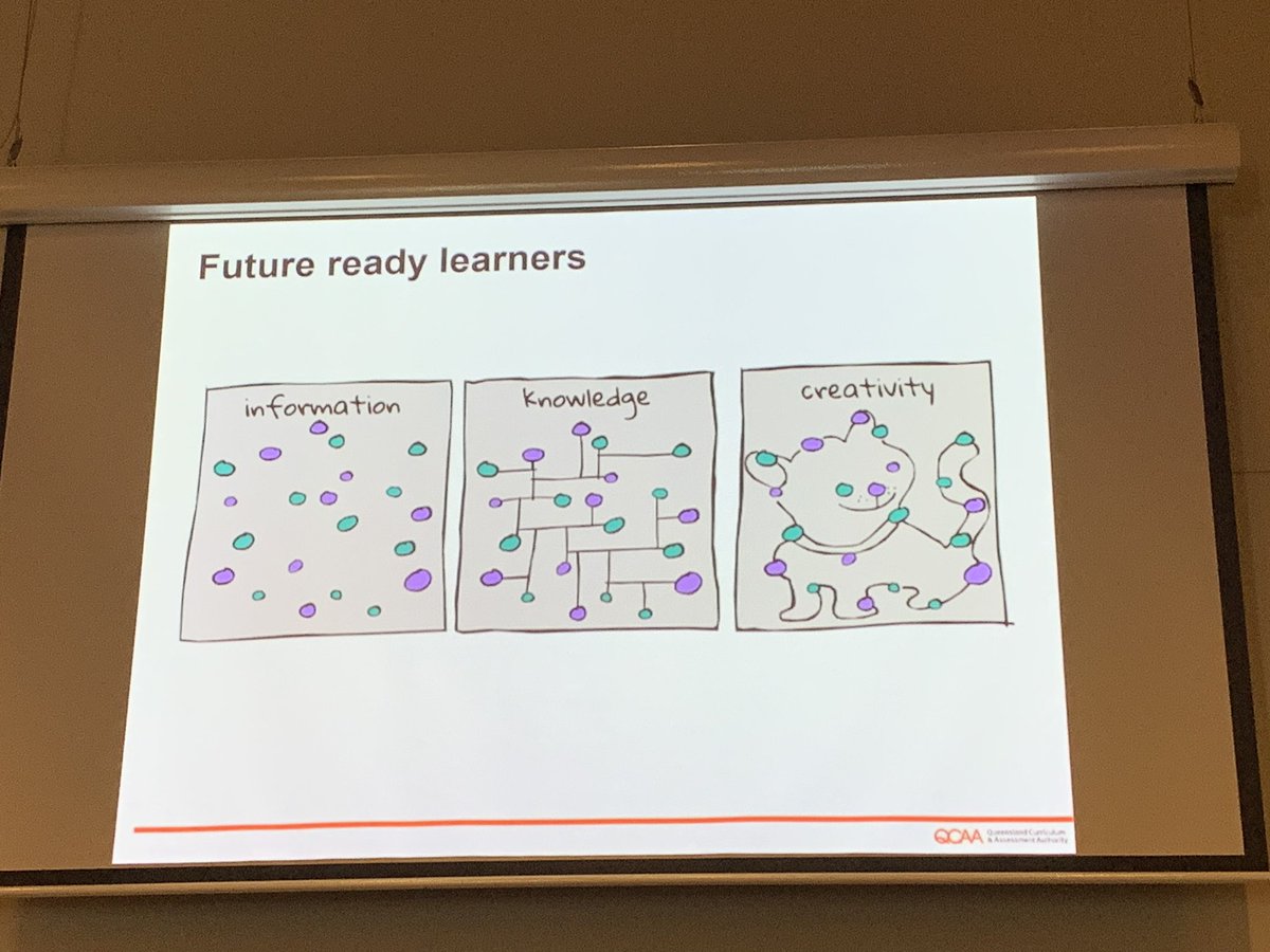 Great little graphic to demonstrate the link between information, knowledge and creativity #OZCAS19 @adolesuccess