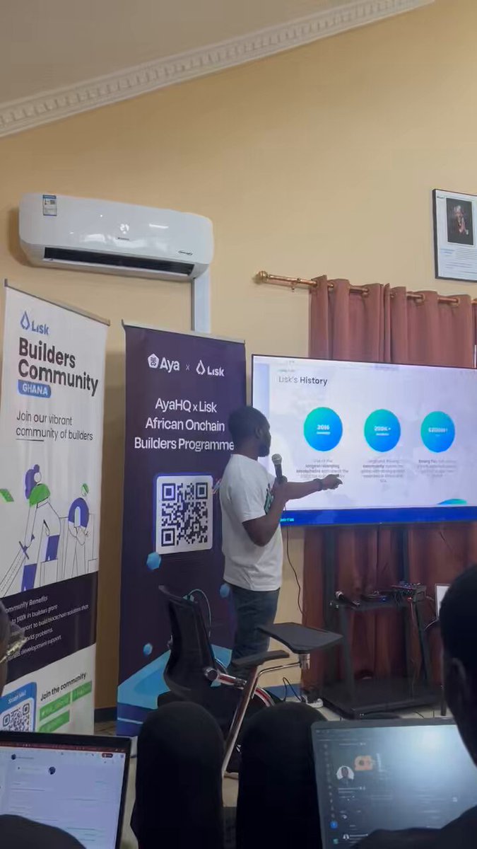 I introduced the participants to @LiskHQ at the @ayahq_ Hub, and have told them about our vision. They were very happy to learn about @LiskHQ. #LiskXAyaRoadshow #OnchainBuildersProgram #GoLisk #BuildonLisk #LiskGhana