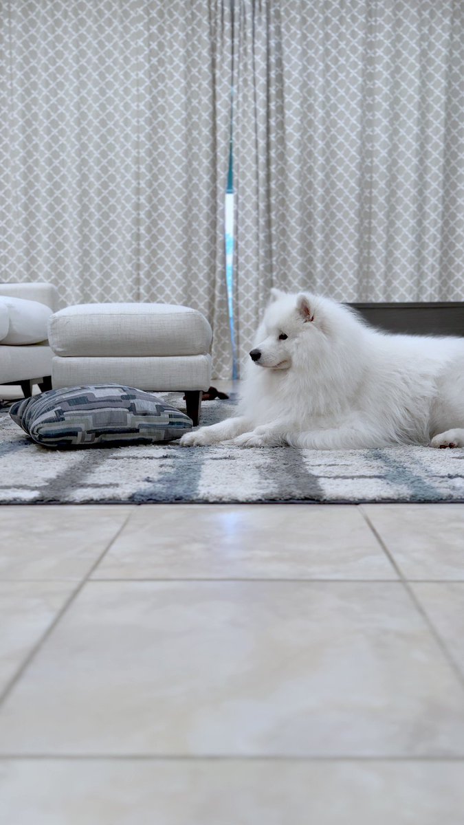 This is the weirdest tennis ball I've ever seen... #mysteriousmelon #OneInAMelonExperience #dogenrichment #datathedog #datathesamoyed #samoyed #dog #dogs #Xdogs