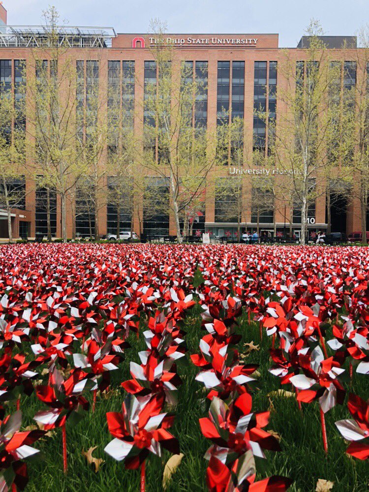 #BuckeyePinwheelGarden celebrates more than 9,700 organ transplants at OSU since 1967. Each pinwheel has 8 spokes: one organ donor can save up to 8 lives. #ThisIsOSU #OneOSU