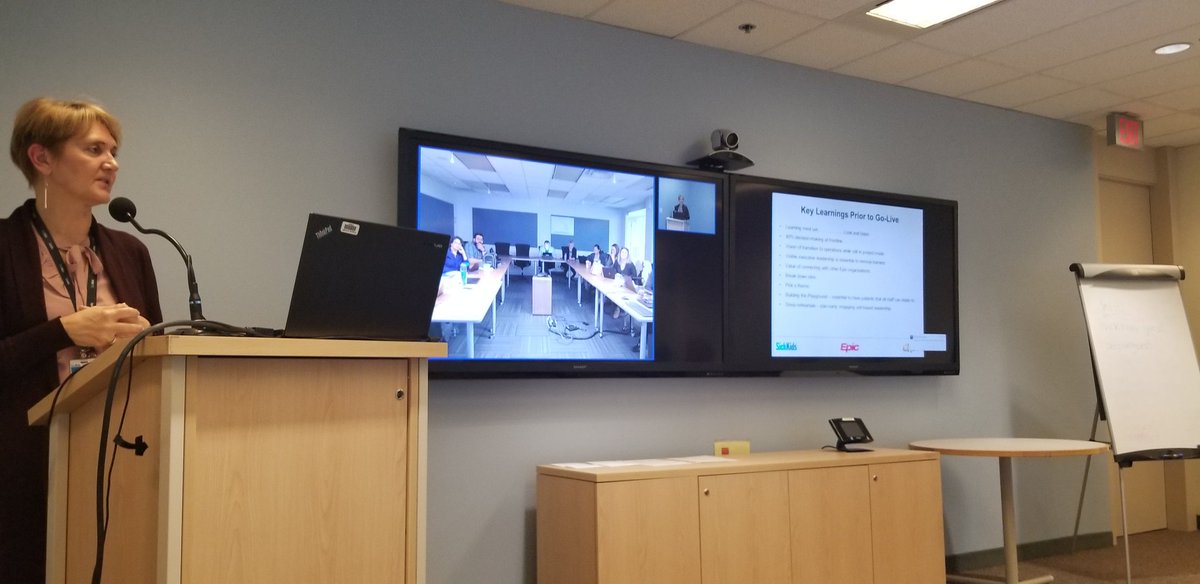 Very insightful presentation about implementing a new EMR @SickKidsNews. Lessons learned more than 90% of all decisions to ensure success made by frontline staff. Look and listen. #EntrepreNurse #ONIG #RNAO @SEFutures