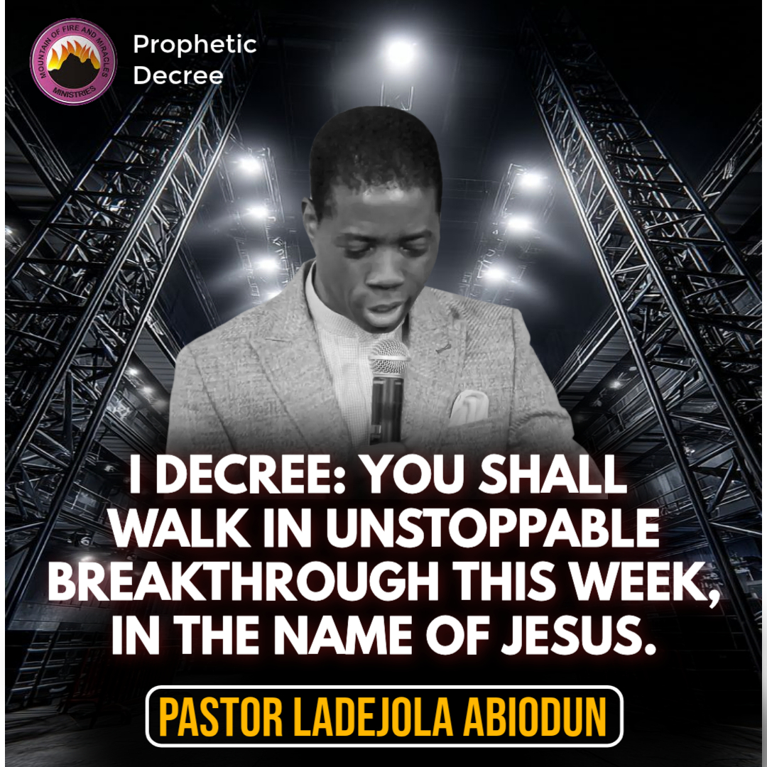 I decree, you shall walk in unstoppable breakthrough this week, in the name of Jesus. A Loud Amen. 🙏 #UnstoppableBreakthrough #DivineSpeed #OpenDoors #NoMoreDelay #VictoryIsYours #PrayerWorks #MFM #PropheticDeclaration #pastorladejolaabiodun