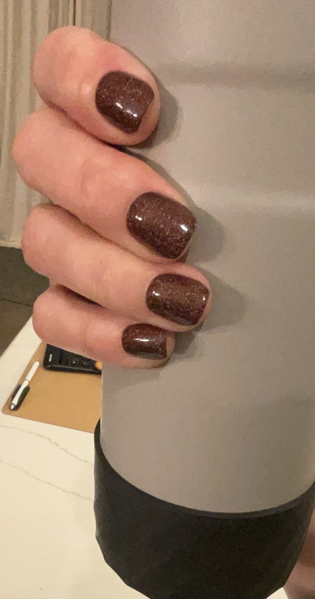 Nail polish of the day: Orbite Me by Holo Taco @holotaco Sorry the pic’s a wee bit fuzzy, but oh man. So pretty in person. Browned-out wine with holo. Nice for us olive-toned ladies. [I slapped on and shaped a fresh set of tips for this mani.] #OrbiteMe