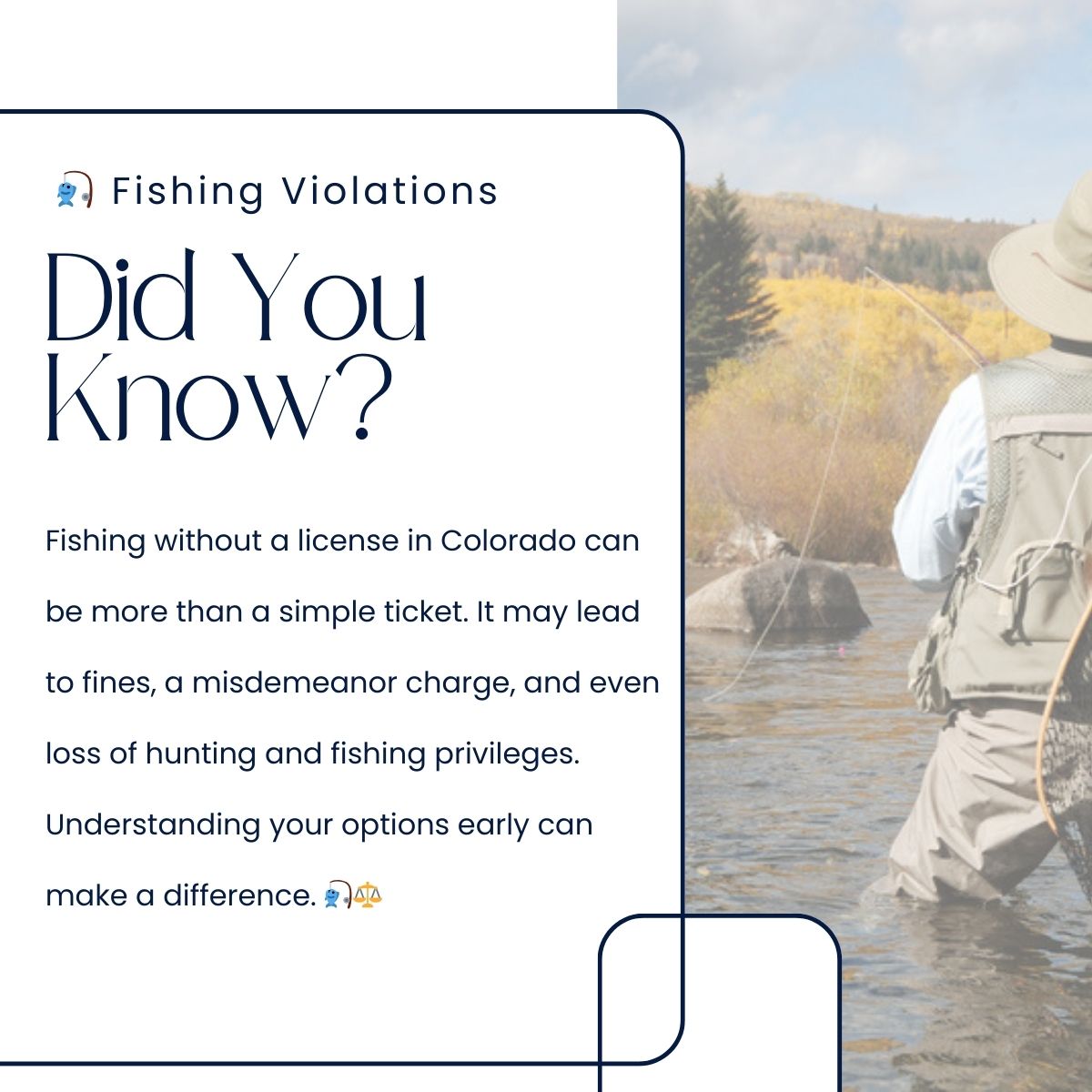 Many outdoor citations carry consequences people don’t expect. Understanding your options early can make a difference. Learn more about fishing violations and your rights. #ColoradoLaw #FishingColorado #OutdoorLaw #LegalTips #ColoradoOutdoors #BakerLawGroup ⚖️