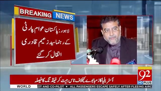پاکستان عوام پارٹی کے رہنما سید زعیم قادری انتقال کر گئے #92newshdplus #Pakistan #PAP #ZaeemQadri #passedaway #92news #LatestUpdates