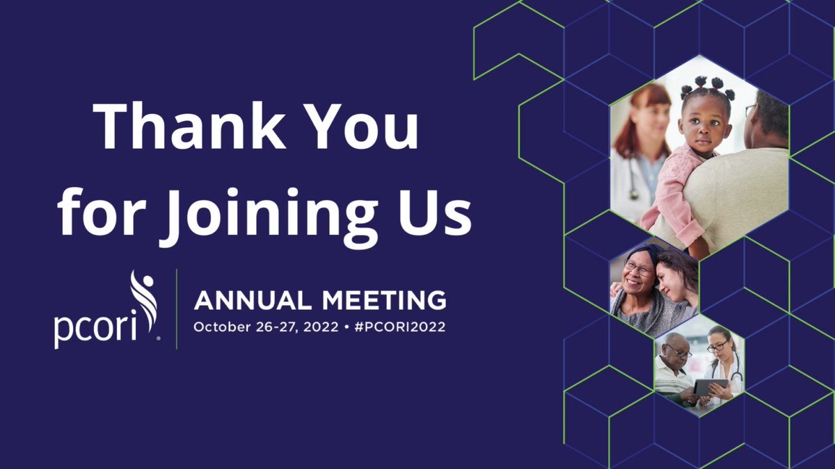 Thank you to all the panelists, speakers, and poster presenters -- and you -- for joining us for the #PCORI2022 Annual Meeting! We look forward to seeing you next year for #PCORI2023.