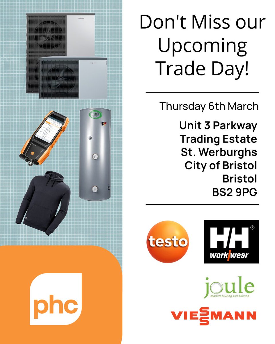 Join Us for Trade Day at PHC St Werburghs – March 6th! 🚀 Meet industry experts at our Trade Day on March 6th, from 8am to 12pm. Get expert advice, discuss your needs, and connect with leading brands—don’t miss out! #TradeDay #PHCParts #HVAC #Plumbing #ExpertAdvice