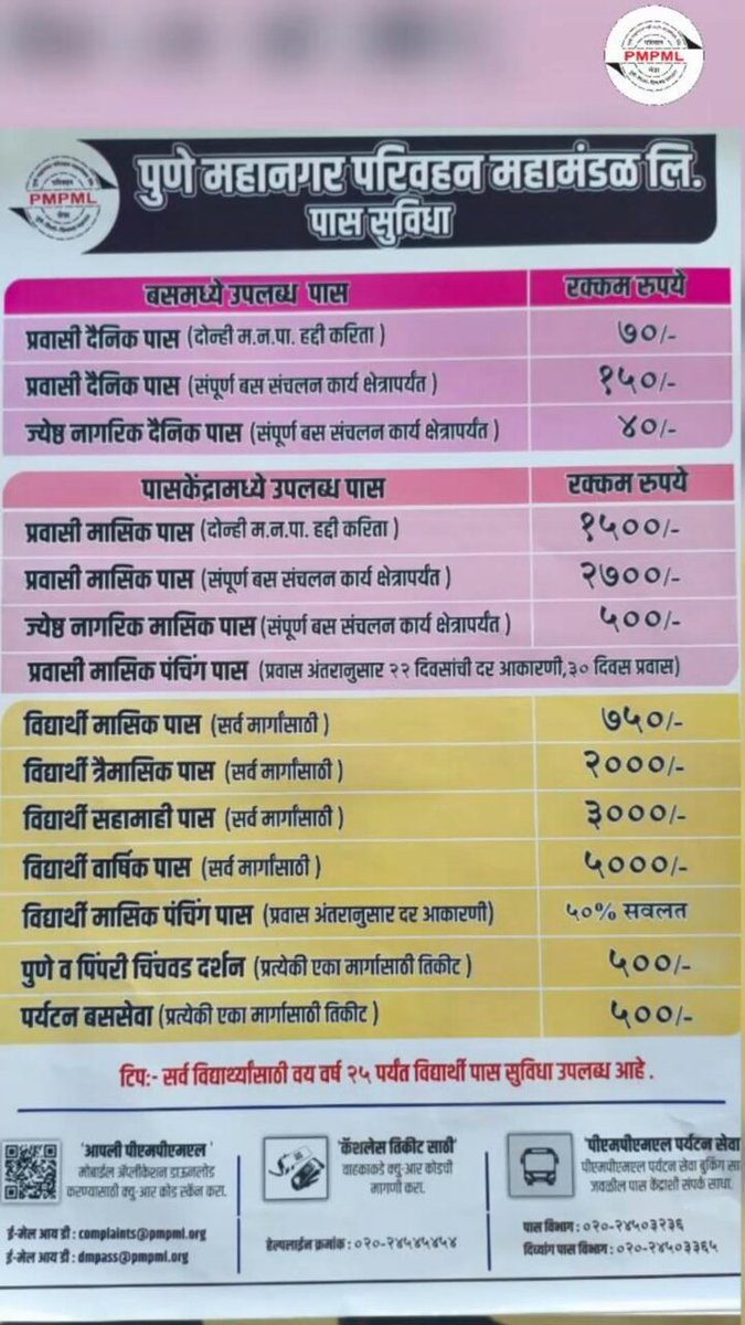दररोजचा प्रवास अधिक सोयीचा, सुरक्षित आणि किफायतशीर बनवाPMPML च्या विविध बस पास योजनांमुळे तुमच्या दैनंदिन प्रवासात होईल वेळ आणि पैशाची बचत.स्मार्ट प्रवासी बना, आजच तुमचा पास घ्या! 🚍#PMPML #PMPMLPass #BusPass #PuneLifeline #SmartTravel #PublicTransport #AffordableTravel