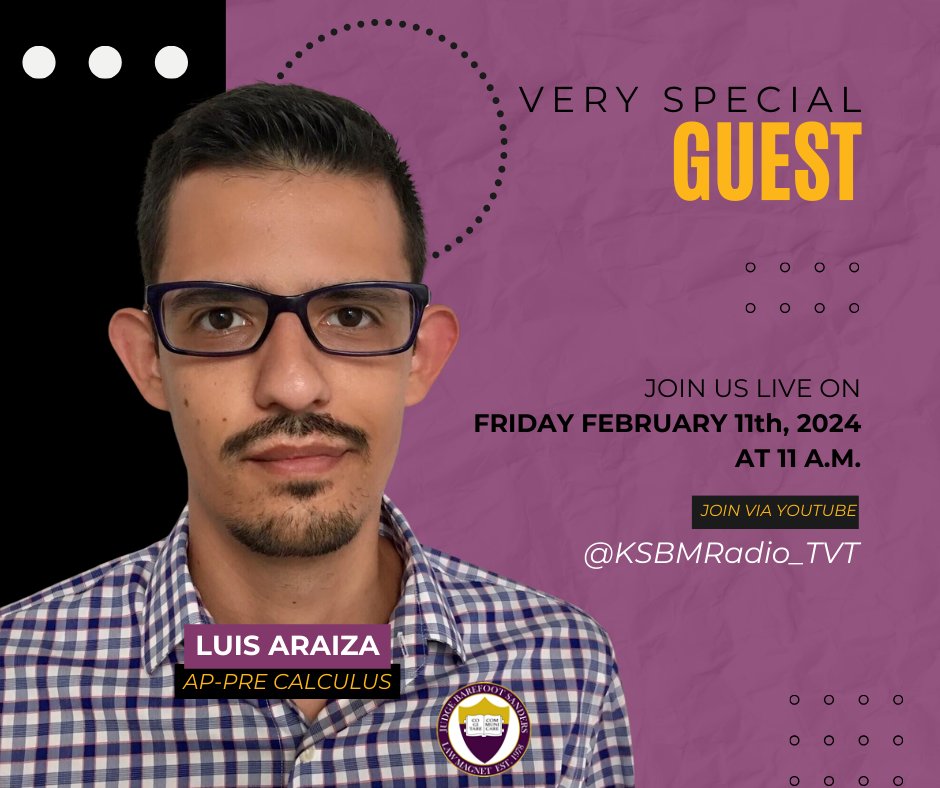 📢Get Ready! The KSBM Radio Juniors are interviewing Mr. Luis Araiza TOMORROW‼️Make sure to tune in to YouTube at KSBMRadio_TVT at 11 A.M. to watch live. #apteacher #ksbmjuniors #precal #studentempowerment