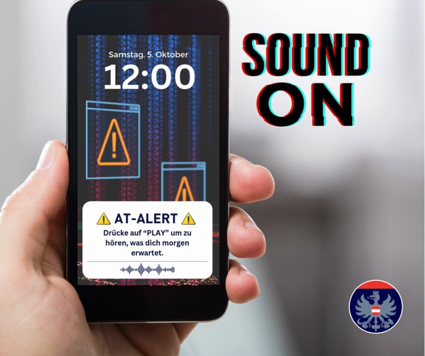 📳 🔊 Wie klingt eigentlich ein AT-Alert? Wer nicht bis zum morgigen #Probealarm warten möchte, kann schon heute hier reinhören. ▶️ #Play #SoundOn #CellBroadcast #ATalert @BMI_OE
