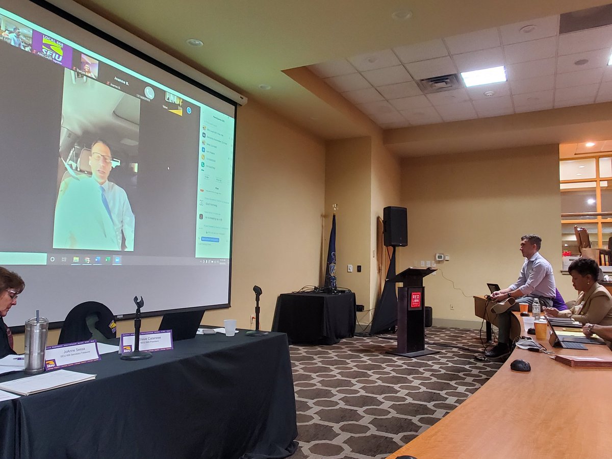 Thanks to @JoshShapiroPA for joining our statewide executive board meeting today! We always love when pro-worker supporters make time for our member leaders 💜 And special thanks for hanging out with our Member Organizer, Tamika, this morning out in West Philly! #ProWorker #1u