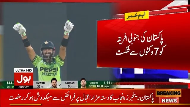 تیسرا ون ڈے: پاکستان نے جنوبی افریقا کو 7 وکٹوں سے ہرا کر سیریز 1-2 سے جیت لی #PakVsSA #BreakingNews #BOLNews