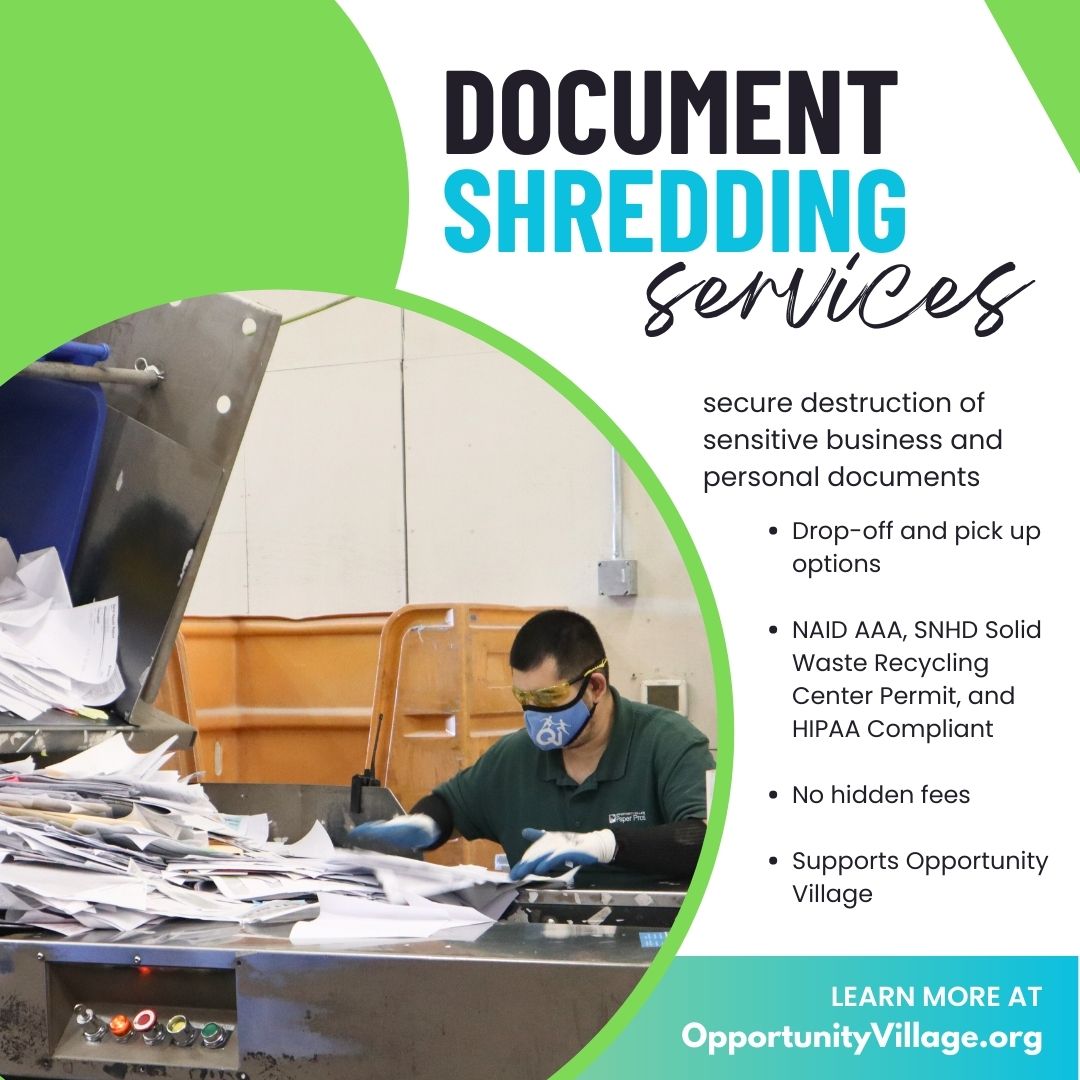 This Earth Day, do your part in helping the environment and the community, by choosing responsible document destruction methods through #OpportunityVillage's #PaperPros. 🙌 🌎️ Get your free quote or schedule a pickup today. l8r.it/cIfB #EarthDay #LasVegas