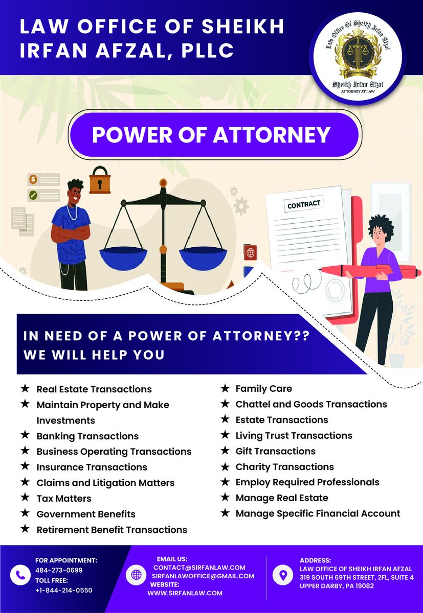 Unlock the Power of Attorney! Need help with legal matters? We've got you covered. Our expertise spans a wide range of transactions, from real estate to financial management...#sheikhirfanafzallaw#LegalExperts #financialsupport #pathtoresidency