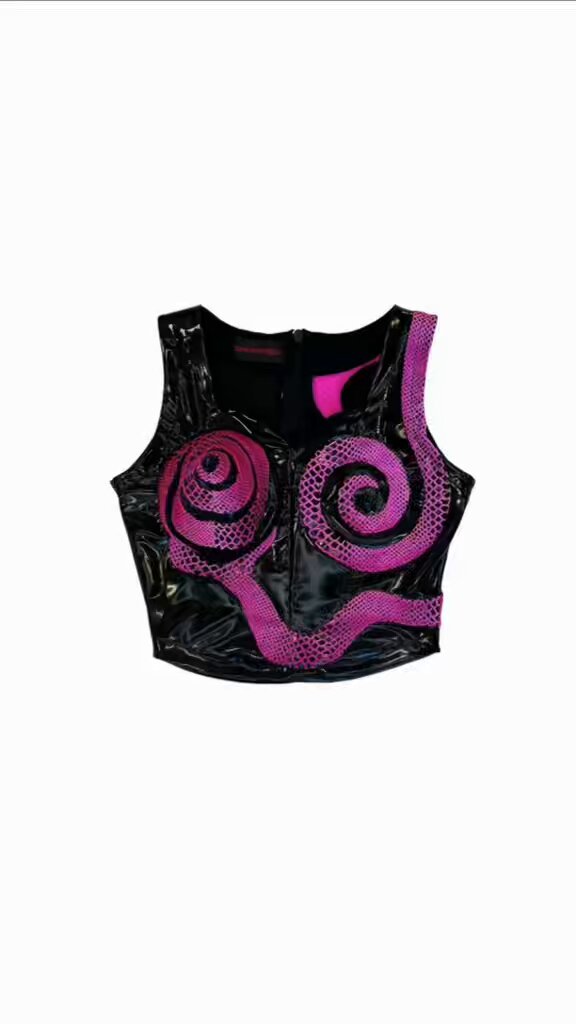 Snake Attack! I made this cute snakebite top in black oil slick and bubblegum pink Available now, link in bio #snake #patterncutting #patternmaking #seamstress #dressmaking