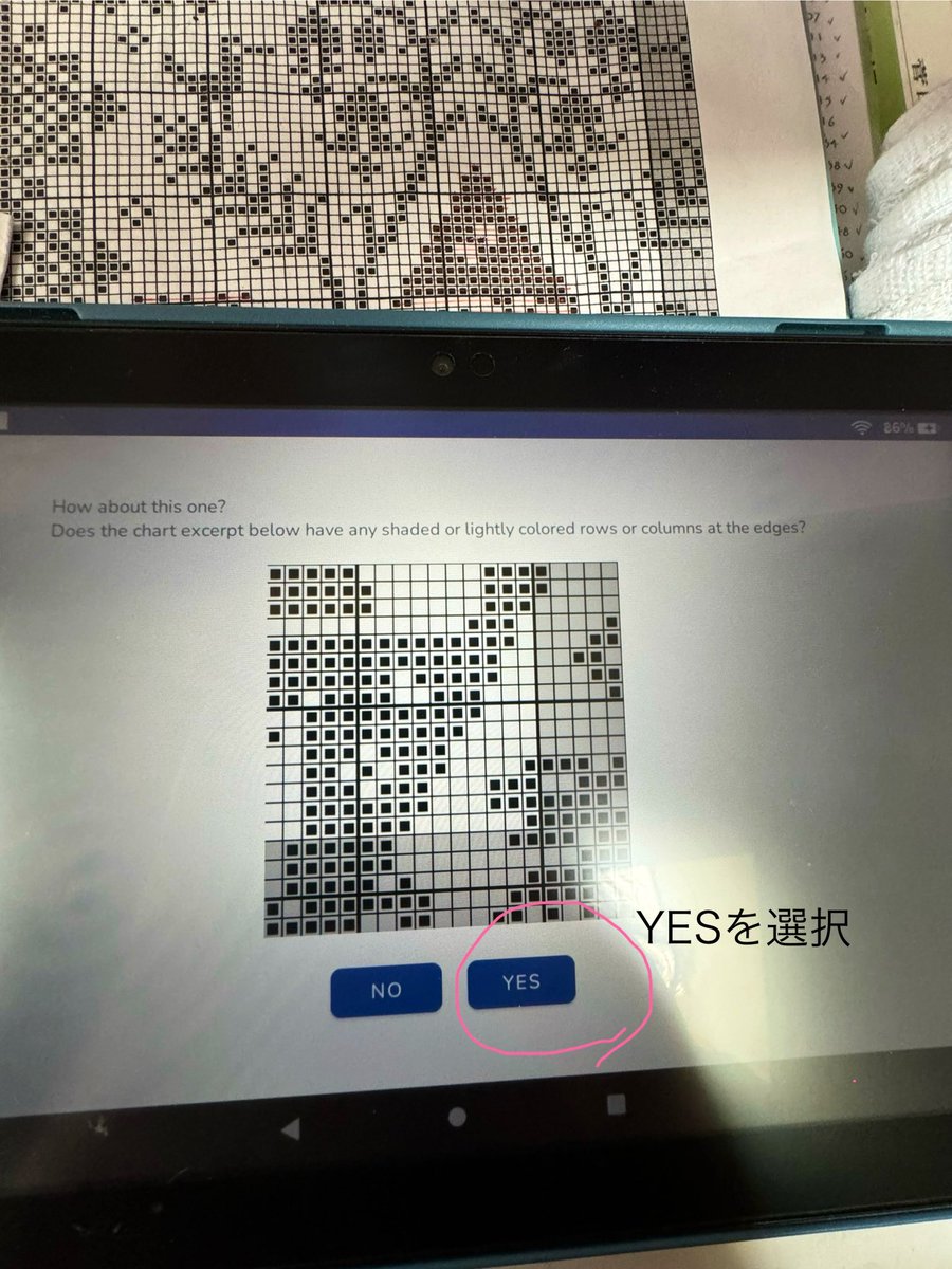 刺繍の図案アプリ #PatternKeeper でのチェックに使うのです。このアプリ、Androidの携帯、タブレット用しかないので、🍎派のワタシは このアプリのためだけに 数年前に Androidタブレットを買いましたよ😆