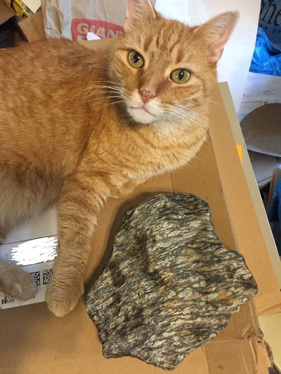 Dad just found this giant piece of gneiss while he was out on a walk today- perfect for #InternationalRockDay!! 😸😸😸 #GeologyWithCats #PawForScale