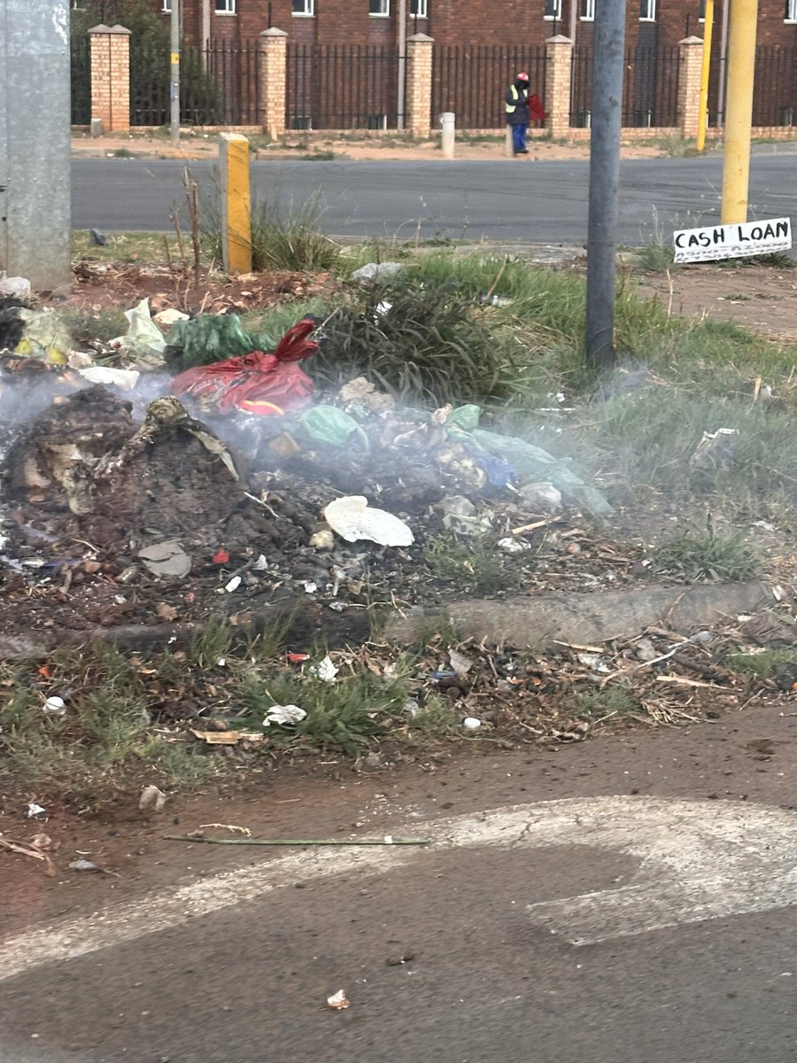 Please send cleanup teams to Isando & Brewery St, Trash built up on sidewalk for weeks now set on fire by street traders. #payyourpart