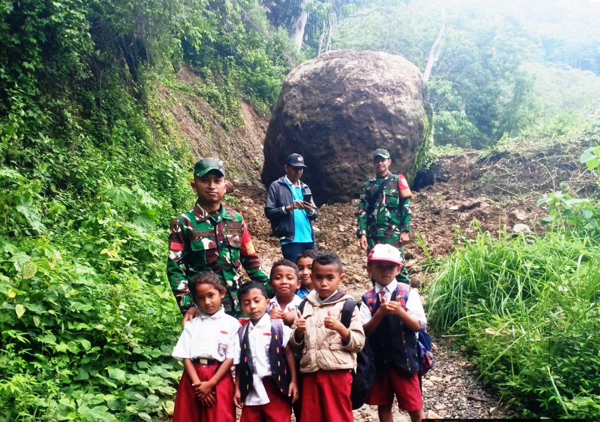 Babinsa Koramil 1612-01/Ruteng Bantu Anak Sekolah Seberangi Longsoran #TNIManunggalRakyat #PeduliPendidikan #GotongRoyong #Kodim1621Manggarai #TNIPRIMA #TNIADPrima #TNIADbekerjadenganhati #TNIADDihatiRakyat #TNIADBerjuangBersamaRakyat #PrajaRaksakaPeduliRakyat #PangdamUdayana