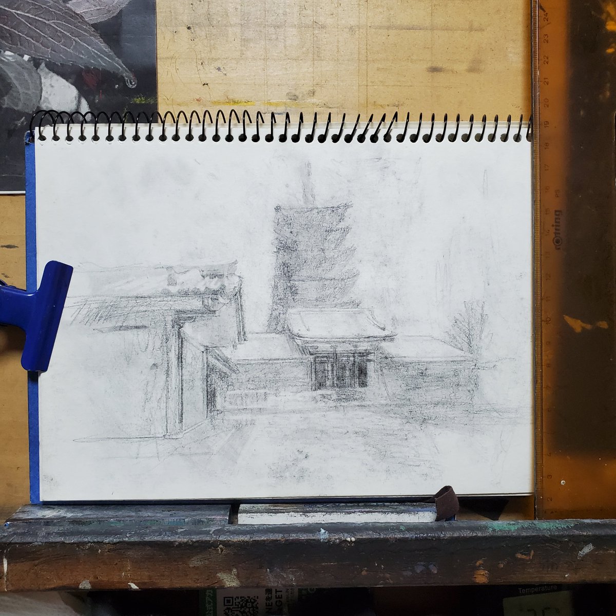 #キタニタツヤ さんの 鉛筆画 Part10『描画途中』です。下描きの初期段階~塗り途中までの道程。 ※描画スタートは3月9日。左上の画像は、3月下旬に撮影したものです。リアルタイムのものではありません。(freehand) #Pencildrawing #キタニタツヤを描画せよ