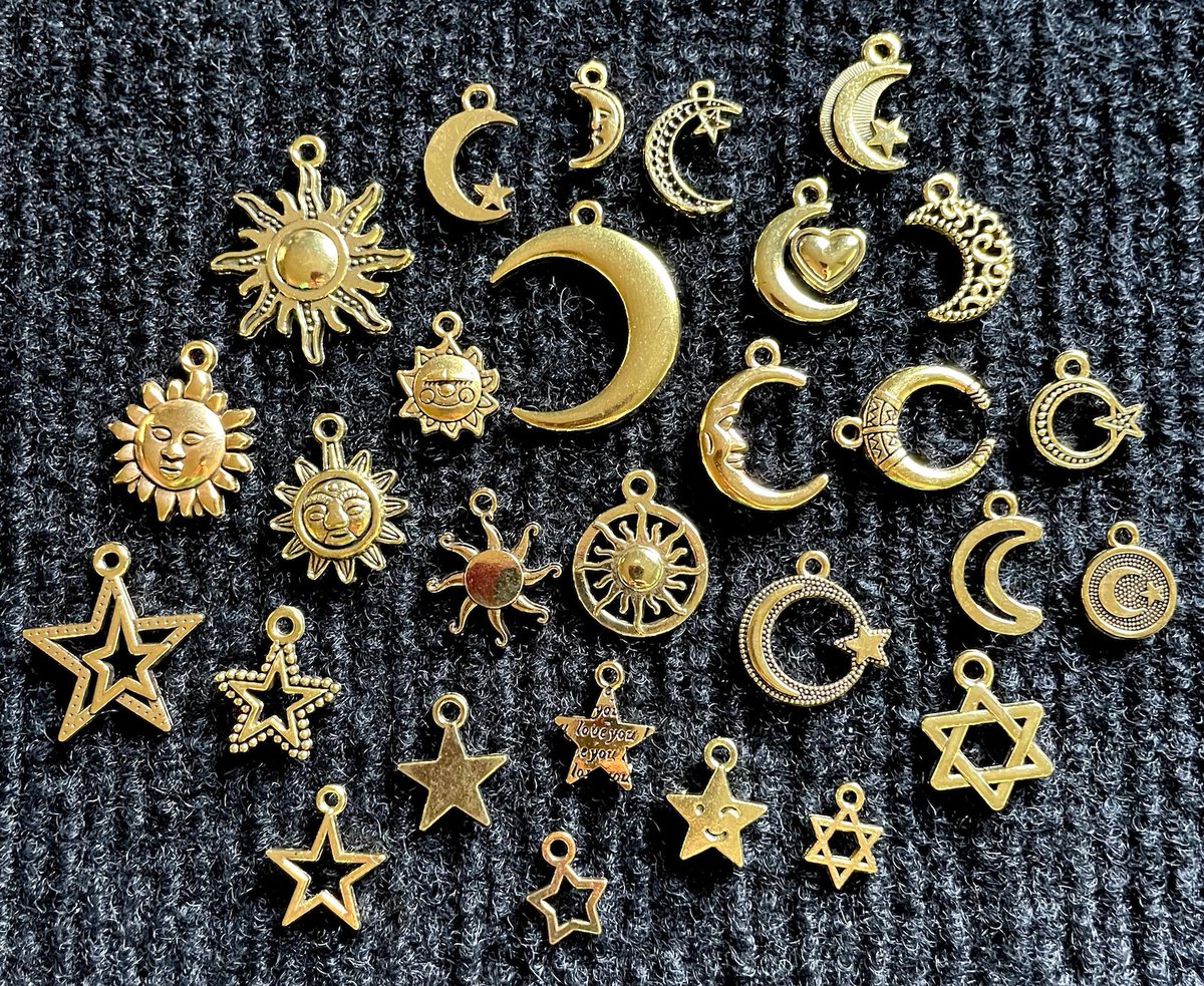 28 Piece Gold tone Celestial Charm & Pendant Set antique gold metal charms for jewelry making #piece #JewelryMaking #PendantSet #GoldMetalCharms #CelestialCharm #GoldTone #gift #StuffByWoosiesMom #etsy 👉etsy.com/listing/134086…