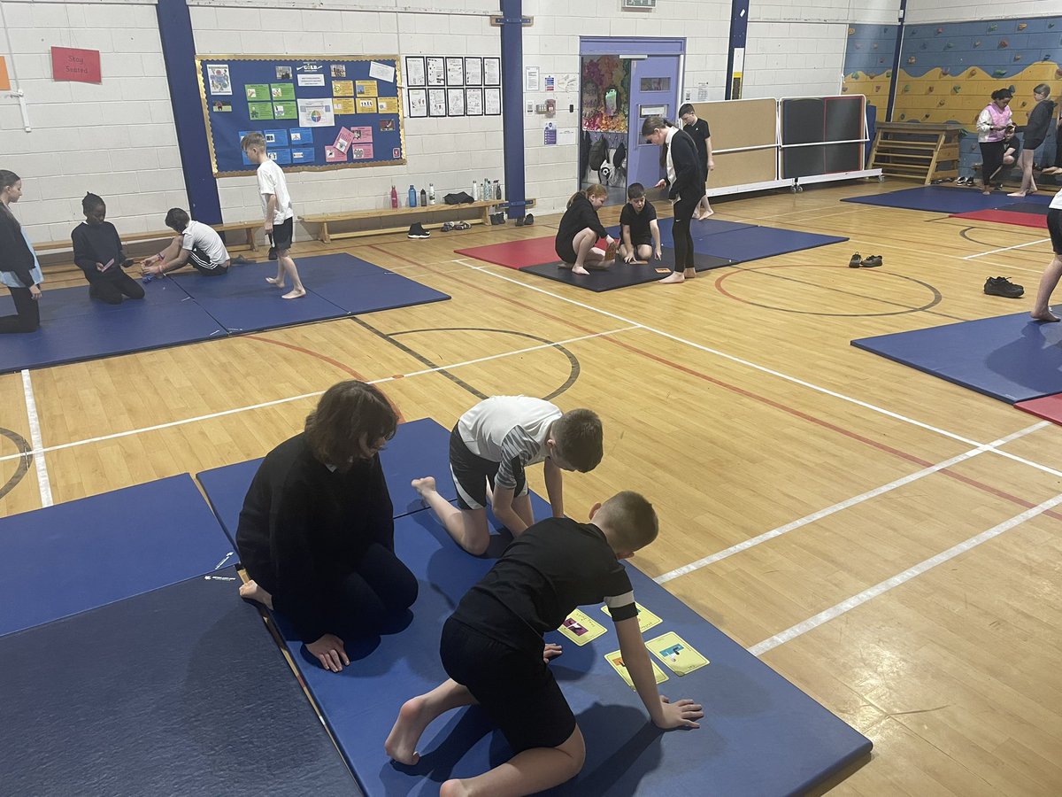 We have moved onto floor work for Gymnastics. Balance, stretch, core strength, pair work, all supported using Yoga Pretzels cards! Great work from the P7’s 👍🏼 #GymnasticsBlock #performanceprep #corestrengthandbalance #collaboration 🤸🏻♀️🤸🏽🤸🏼♂️