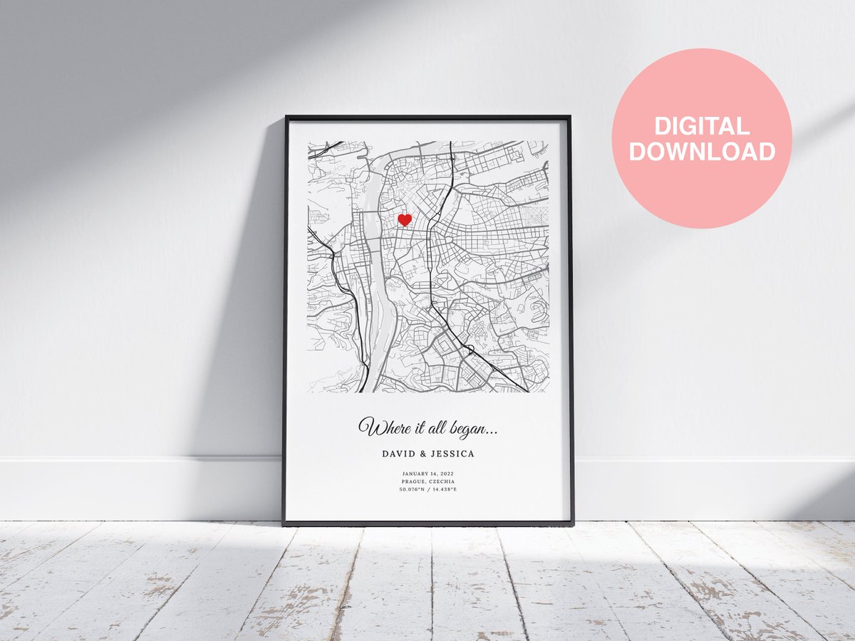 Where We Met Map, Where It All Began, Personalized Gift for Couple, Couple Map, Anniversary Gift, Custom Map, Digital Download etsy.me/3rdTz2I #wherewemetmap #whereitallbegan #personalizedmap #giftsforher #ourfirstdate