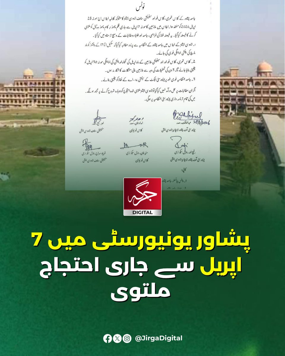 پشاور یونیورسٹی میں 7 اپریل سے جاری احتجاج ملتوی #Peshawar #KP #PeshawarUniversity #JirgaDigital #BunyanUmMarsoos