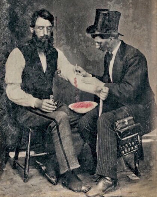 Bloodletting in 1860, one of only three known photographs of the procedure (from Burns Archive) #histmed #historyofmedicine #phlebotomist #pastmedicalhistory