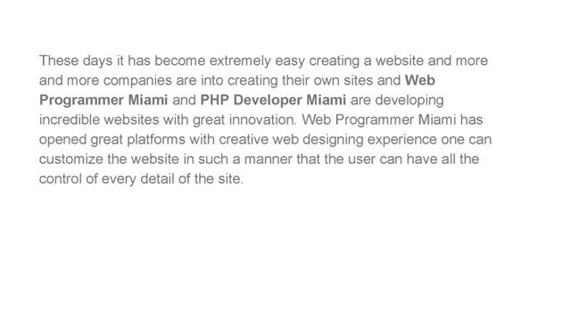 the team of experts can make an exclusive website that will also be very good at functioning. Our main motto is to provide robust PHP website development services and fetch desired success for you. #PhpDevelopmentMiami #WebProgrammerMiami