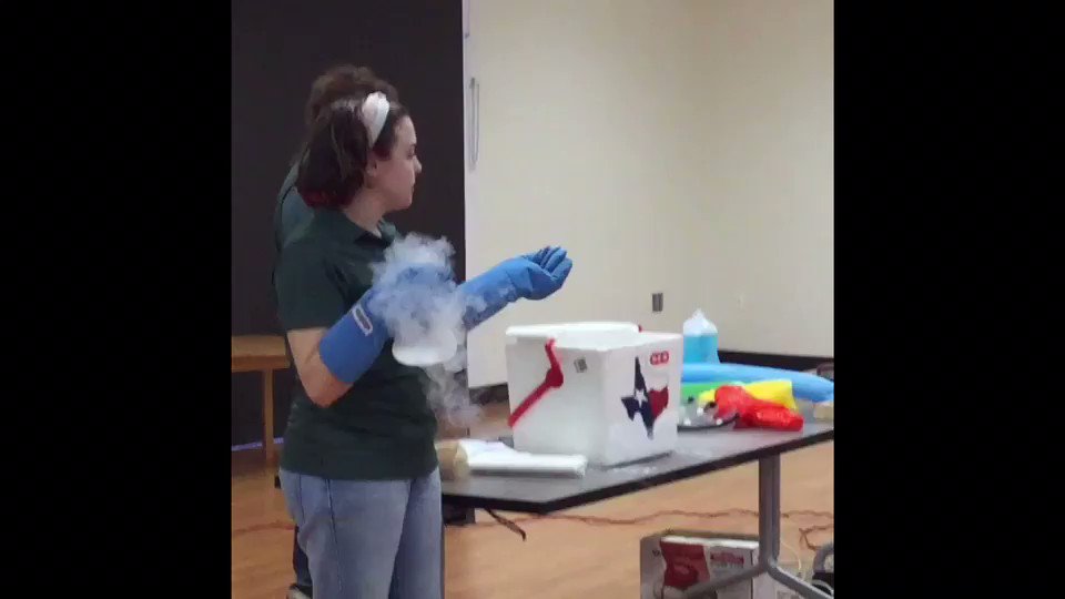 Watch that liquid nitrogen boil! Thanks, UT Physics Circus #PhysicsCircus #FunWithStatesOfMatter #BananaHammer