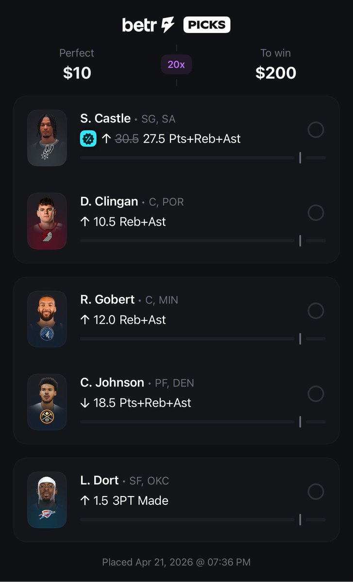 ⚾️ Betr Picks NBA Castle Discount 🏀 +1900 (FV +1787.54) +EV: 6.00% Playing: 0.06 Unit Promo Max #betr #picks #sports #mlb #nba
