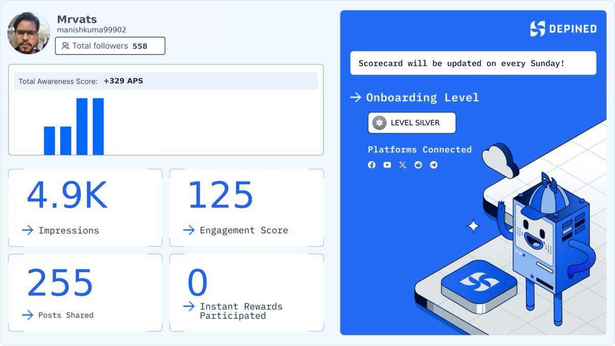 Weekly Hivemind Scorecard ๐ Progress tracked. Engagement validated. Rewards active. Check it out and start earning: ๐ hivemind.depined.org #PlatformBreakdown #RealTimeMonitoring #Ayreshare