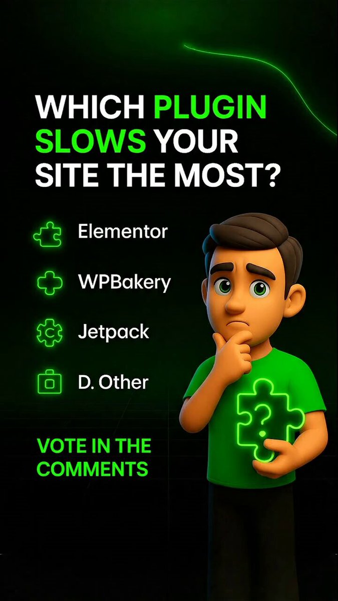 Website running slow? ⏳ Let’s settle this once and for all… Which plugin slows your site the MOST? 🟦 Elementor 🟩 WPBakery 🟧 WooCommerce 🟥 Others? (Comment below!) 👇 Vote in the comments! #WordPress #SiteSpeed #PluginIssues #WebDev #WebsiteOptimization #AiDigitals