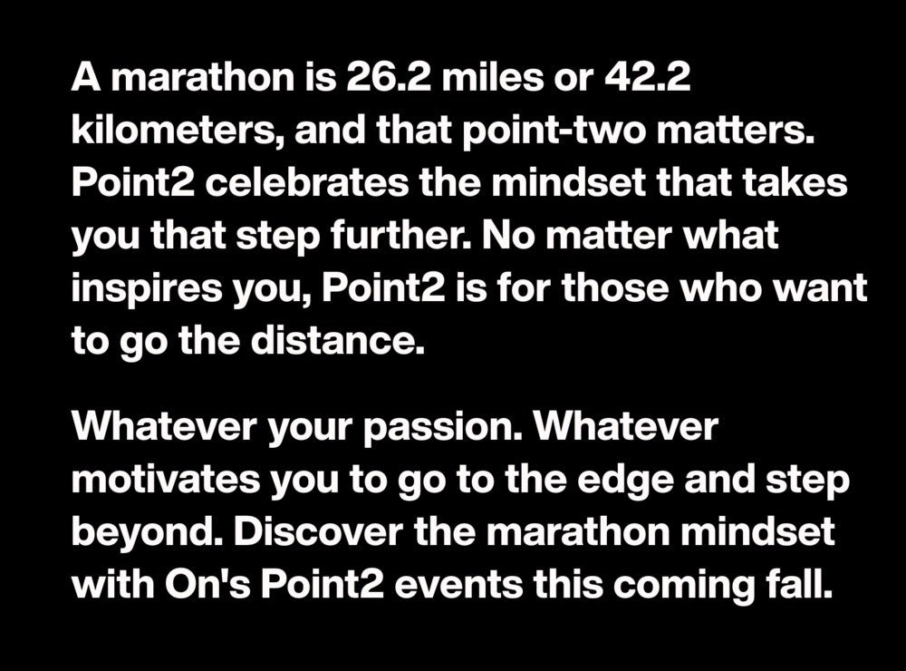 Inspired by the physiological stages that hit your mind and body in the last 0.2 miles of a marathon, sports performance brand @on_running is hosting a fabulous four-day event in the heart of Shoreditch –#Point2 London at @proteinstudios. Find out more: on-running.com/point2