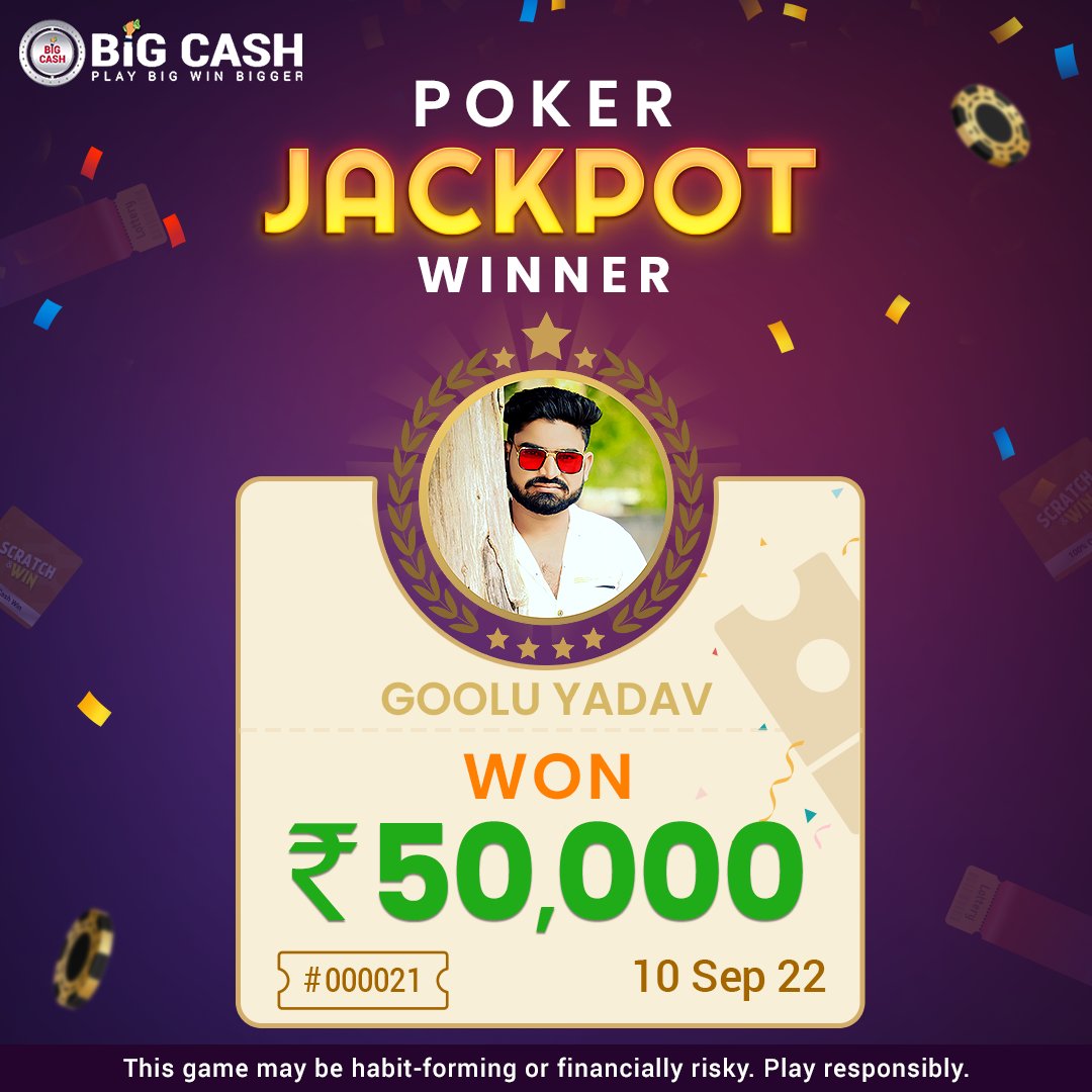 Meet 💥𝗚𝗼𝗼𝗹𝘂 𝗬𝗮𝗵𝗮𝘃💥, who won the #PokerJackpot with the winning amount of ₹𝟱𝟬,𝟬𝟬𝟬.Congrats Goolu.😊 You can also win real money by playing games on #BigCash. So, start playing now.😎 👉 𝗗𝗼𝘄𝗻𝗹𝗼𝗮𝗱 𝘁𝗵𝗲 𝗮𝗽𝗽 𝗻𝗼𝘄: bit.ly/2Z9CXeM