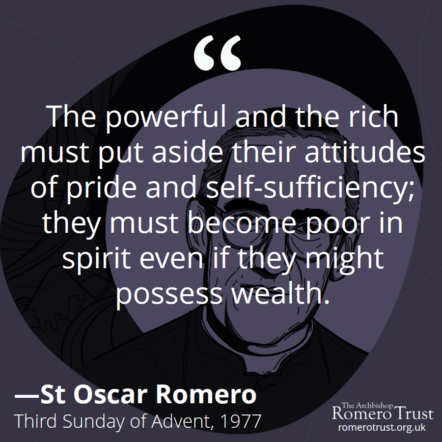 The powerful and the rich must put aside their attitudes of pride and self-sufficiency; they must become poor in spirit even if they might possess wealth —St Oscar Romero, homily for 3rd Sunday of Advent (Year A), 1977. Read/listen at buff.ly/2LVPUyX #Advent #PoorInSpirit